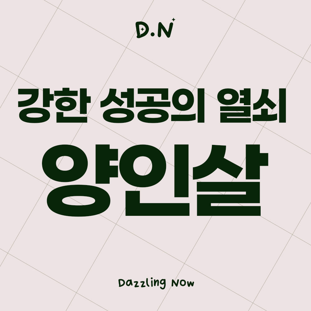 양인살은 백호살, 괴강살과 함께 강한 성격과 성향을 가지는 신살로 부정적인 해석이 많은 대표적인 흉살 중 하나입니다. 하지만 강인함과 대담함을 가지고 있는 사주이기 때문에 인생에 있어서 성공의 열쇠가 될 수 있습니다.