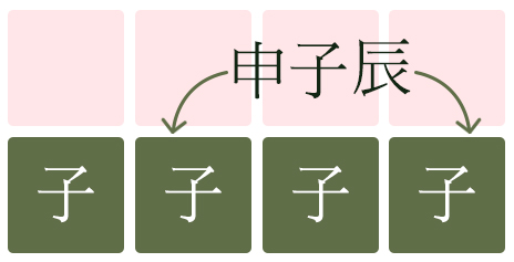 일지나 년지 중 하나가 신(申), 자(子), 진(辰)인 사람은 지지에 자(子)가 오면 장성살에 해당합니다.